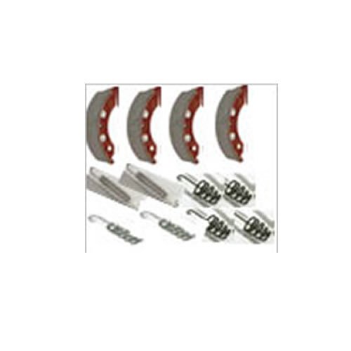 A full set comprising of four brake shoes with pads and all springs required to complete the installation. This kit services one axle, for continued safety, brakes should always be changed as complete axle sets
