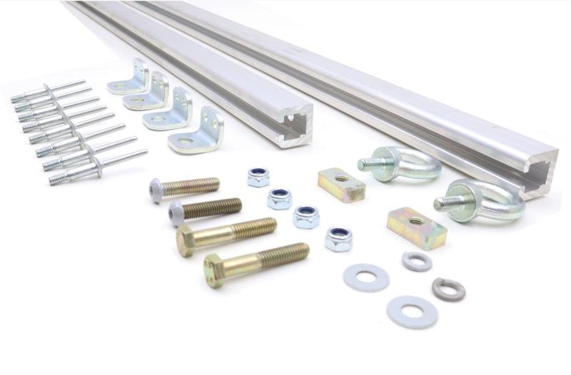 These hay net rails have been devised so that the hay net fastener can slide along a rail fitted above the front ramp and front inspection door. This is so it can be moved to one side if the ramp/ door is in use. The cross member has a slot in it so a sliding nuts and eyelets can be used to hold the hay nets.