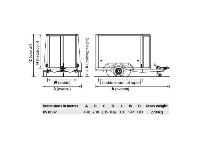 Ifor Williams BV105G 6' H/R RAMP/DOORS 165R13 Box Trailer