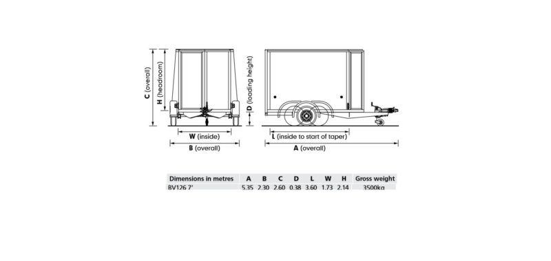 Ifor Williams BV126G 7' H/R RAMP/DOORS 155/70R12 Box Trailer